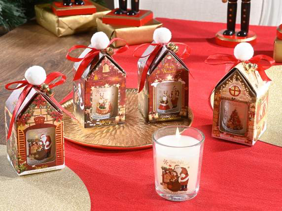 Candele profumate in bicchiere di vetro e scatola a forma di casetta Favola di Natale