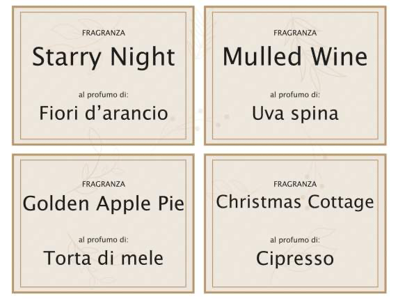 Fragranze: Starry Night, Golden Apple Pie, Mulled Wine, Christmas Cottage (scorrendo le foto trovi le descrizioni delle profumazioni!)