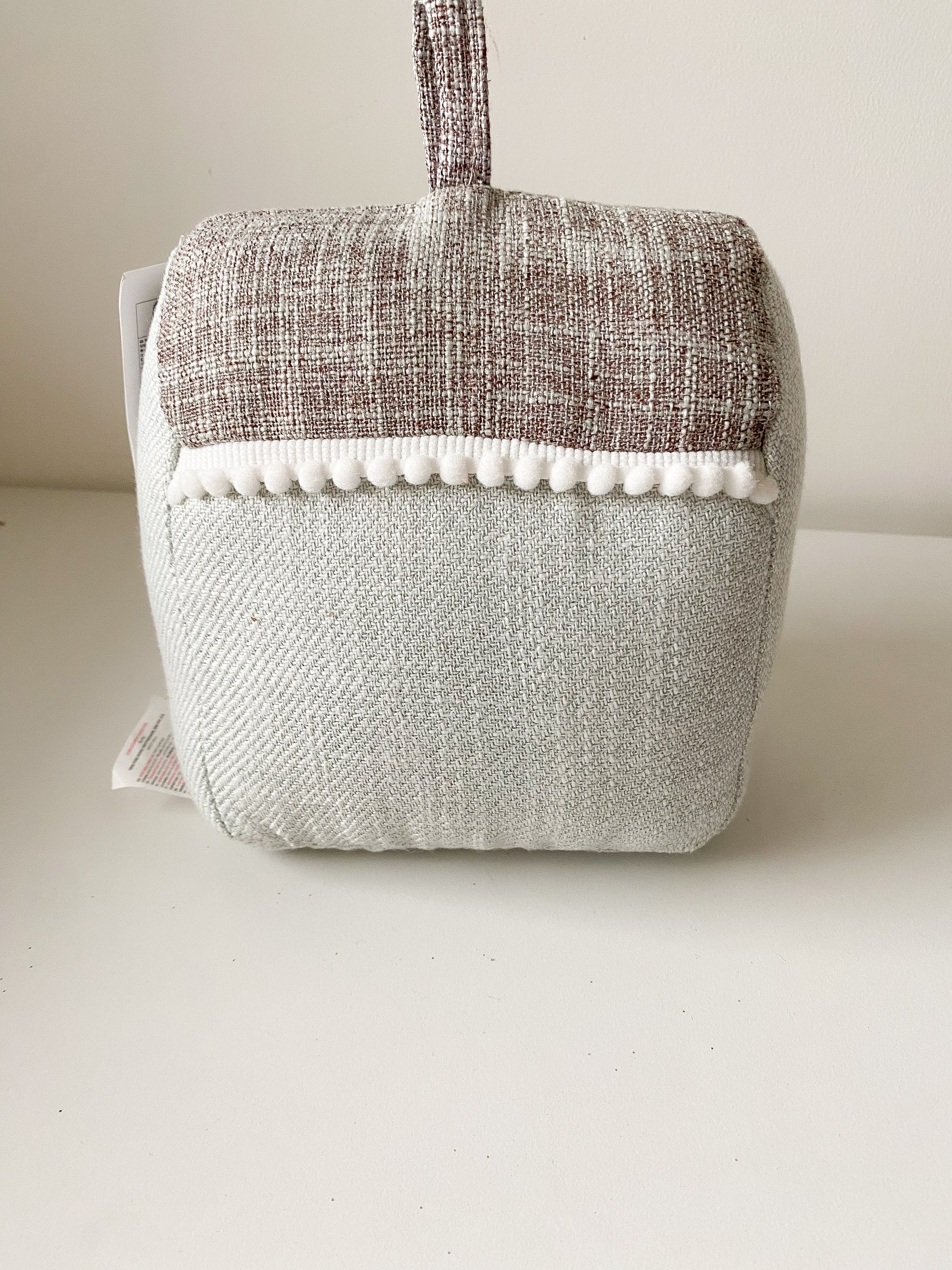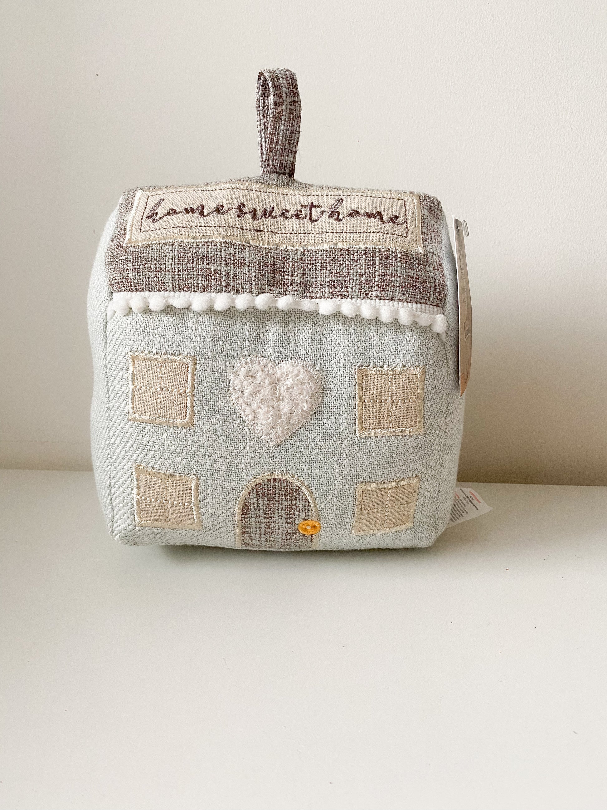 Fermaporta in poliestere a forma di casetta, con scritta.