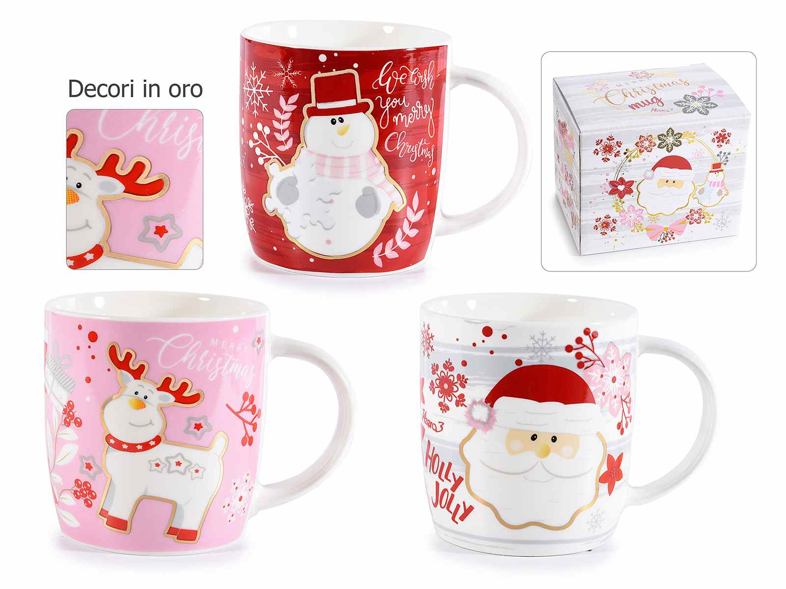 Tazza in porcellana con disegno natalizio con dettagli in oro e confezione!